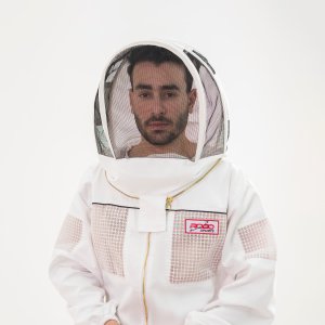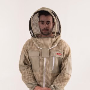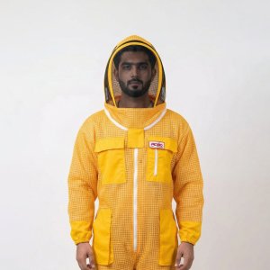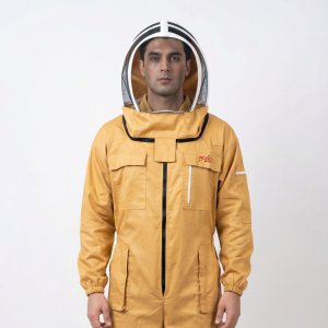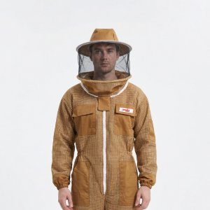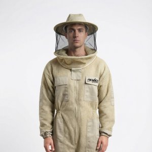 Full-body beekeeping suit with breathable fabric and sting protection.