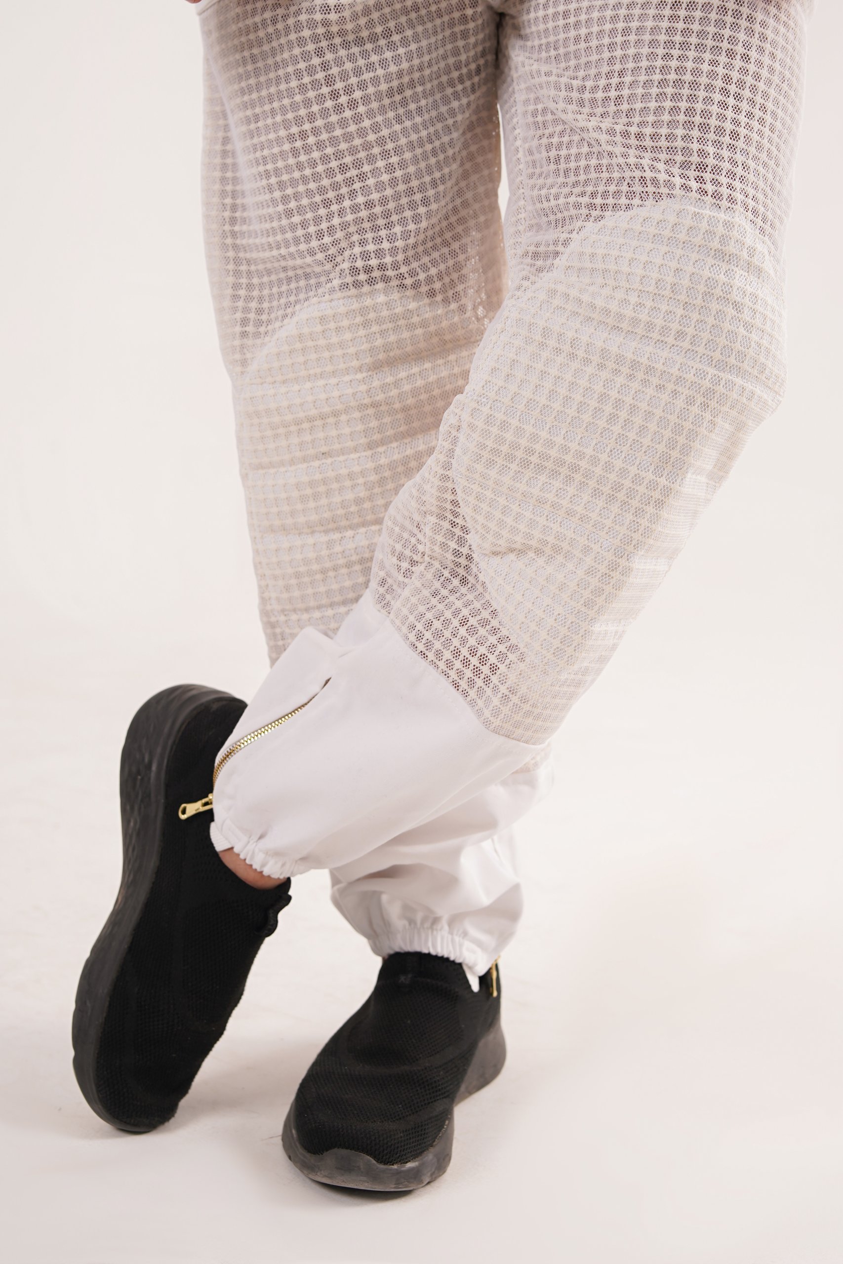 Elastic cuffs and ankles to keep bees out.